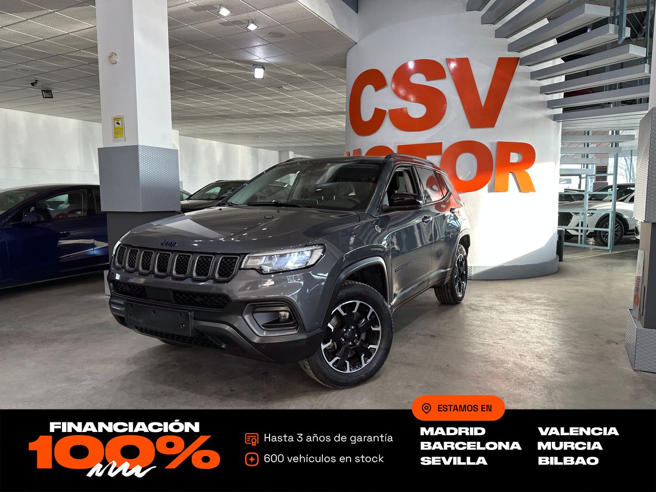 VEHÍCULO HÍBRIDO ENCHUFABLE CON ETIQUETA CERO Y AUTONOMÍA ELÉCTRICA DE MÁS DE 50 KM, CAMBIO AUTOMÁTICO-SECUENCIAL, TRACCIÓN INTEGRAL 4XE, TECHO PANORÁMICO, ASIENTOS DEPORTIVOS CON TAPICERÍA DE CUERO MIXTO, SISTEMA DE NAVEGACIÓN UCONNECT CON PANTALLA DE 10,1” (950€), APPLE CARPLAY & ANDROID AUTO, CÁMARA TRASERA, SENSORES DE APARCAMIENTO DELANTEROS Y TRASEROS, FAROS FULL LED, LLANTAS DE ALEACIÓN DE 17” TRAILHAWK (500€), CONTROL DE VELOCIDAD, AVISO DE ÁNGULO MUERTO, AVISO DE CAMBIO DE CARRIL ACTIVO, SISTEMA DE FRENADO DE EMERGENCIA, VOLANTE MULTIFUNCIÓN EN CUERO CON LEVAS, CLIMATIZADOR AUTOMÁTICO BIZONA (400€), DRIVE MODE SELECT CON MODOS OFF-ROAD, SELECT TERRAIN (AUTO, SPORT, SNOW, SAND/MUD, ROCK), PINTURA METALIZADA (800€),CRISTALES TRASEROS PRIVACY, ETC.TOTAL PRECIO VEHÍCULO NUEVO CON ESTA CONFIGURACIÓN: 48.000€. INFORME DE INGENIERO EXTERNO PARA GARANTIZAR KILOMETRAJE Y ESTADO.